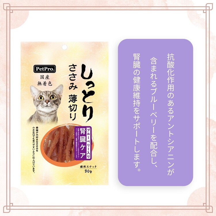 【5個セット】 ペットプロ 国産しっとりささみ 薄切り 腎臓ケア ブルーベリー入り 30g【ポイント10倍】