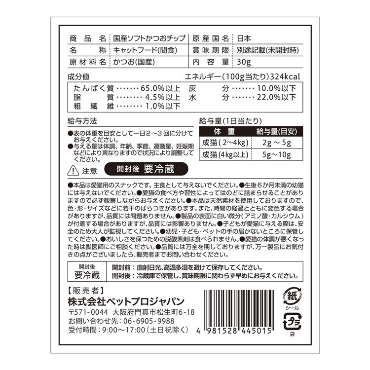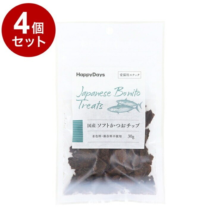 【4個セット】 ペットプロ HappyDays 国産ソフトかつおチップ 猫用 30g