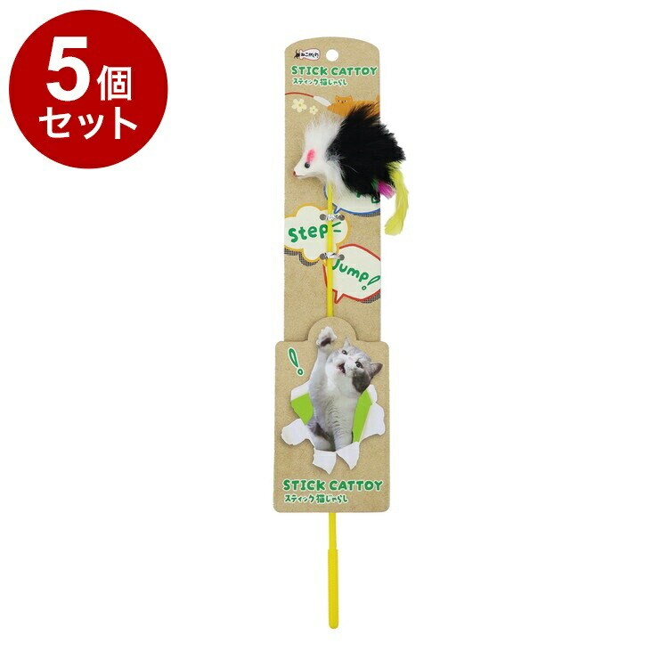 【5個セット】 ペットプロ ねこがくれ スティック猫じゃらし しろくろねずみ