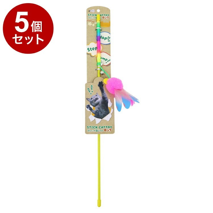 【5個セット】 ペットプロ ねこがくれ スティック猫じゃらし ロング ふわぱたとんぼ