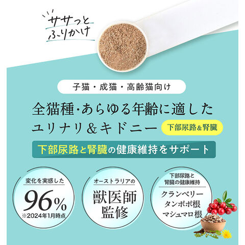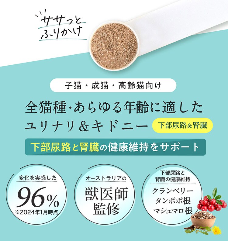 ・ペット愛護先進国オーストラリアで90%の高評価を取得した、全猫種、子猫~高齢猫まで使える獣医師監修のサプリメントです。