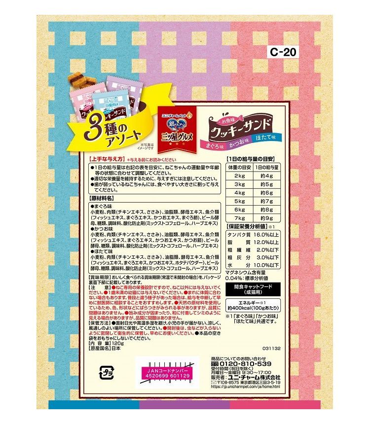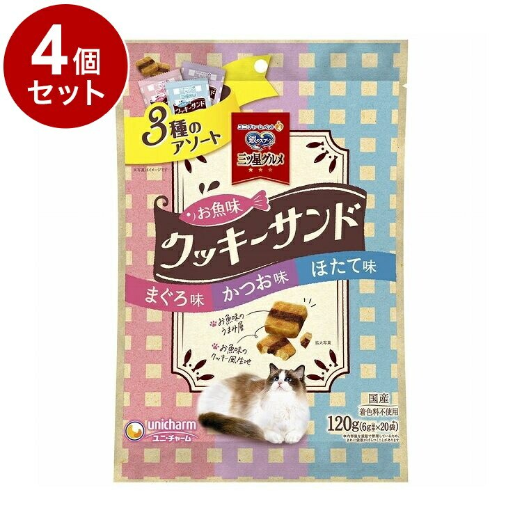 【4個セット】 ユニチャーム 銀のスプーン三ツ星グルメおやつ お魚味クッキーサンド 3種のアソート まぐろ&かつお&ほたて味 120g【ポイント10倍】 【送料無料】