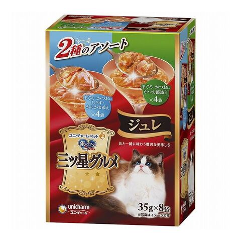 【4個セット】 ユニチャーム 銀のスプーン 三ツ星グルメ パウチ ジュレ まぐろ・かつおにしらす・かにかま添え&まぐろ・かつおにかつお節添え 35g×8個【ポイント10倍】 【送料無料】