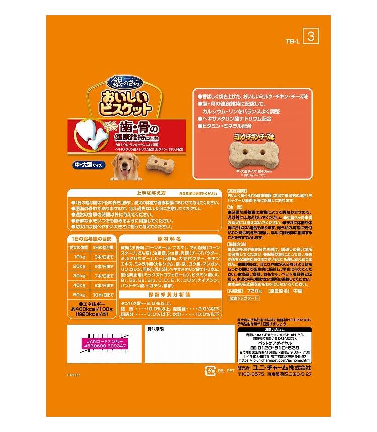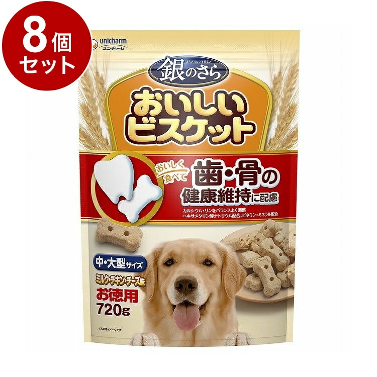 【8個セット】 ユニチャーム 銀のさら おいしいビスケット 歯・骨の健康維持に配慮 中・大型サイズ ミルク・チキン・チーズ味 お徳用720g【ポイント10倍】 【送料無料】
