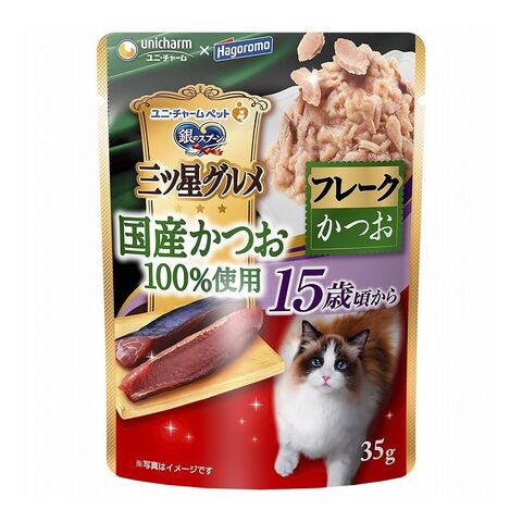 【30個セット】 ユニチャーム 銀のスプーン 三ツ星グルメ パウチ 国産かつお100%使用フレーク15歳頃からかつお 35g【ポイント10倍】 【送料無料】