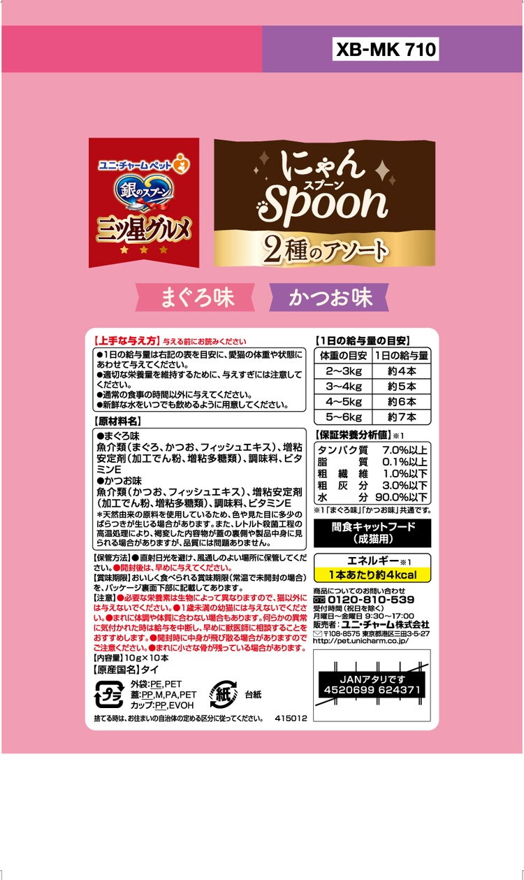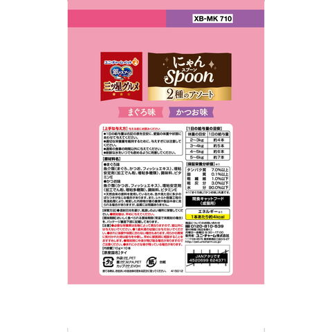 【12個セット】 ユニチャーム 銀のスプーン三ツ星グルメおやつ にゃんSpoon2種のアソートまぐろ&かつお味 100g【ポイント10倍】 【送料無料】
