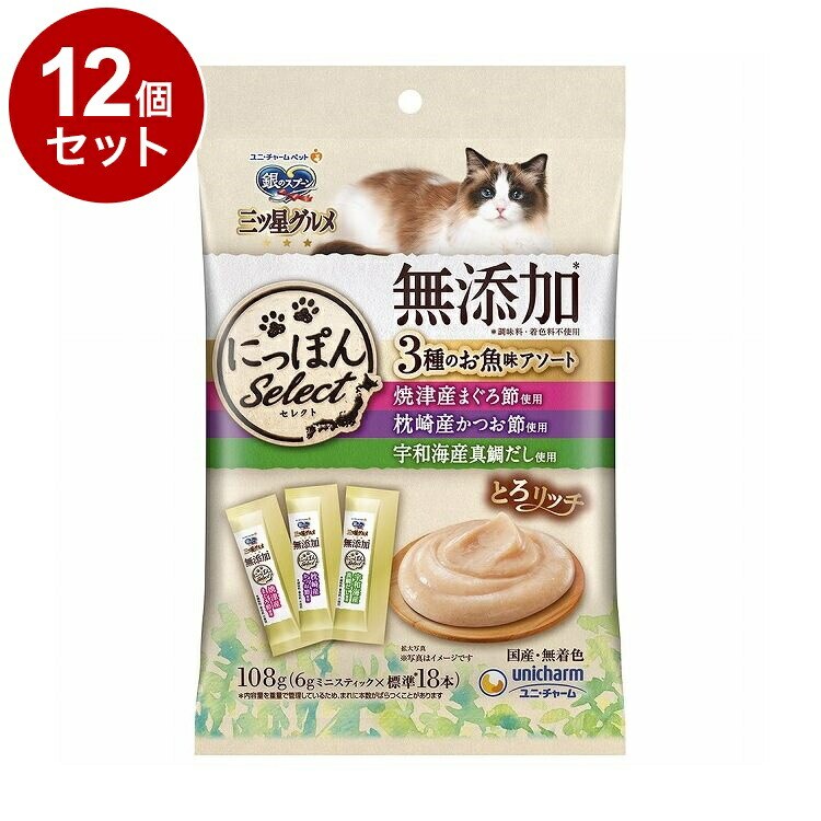 【12個セット】 ユニチャーム 銀のスプーン 三ツ星グルメおやつ にっぽんSelect 無添加とろリッチ3種のお魚味アソート 108g【ポイント10倍】 【送料無料】