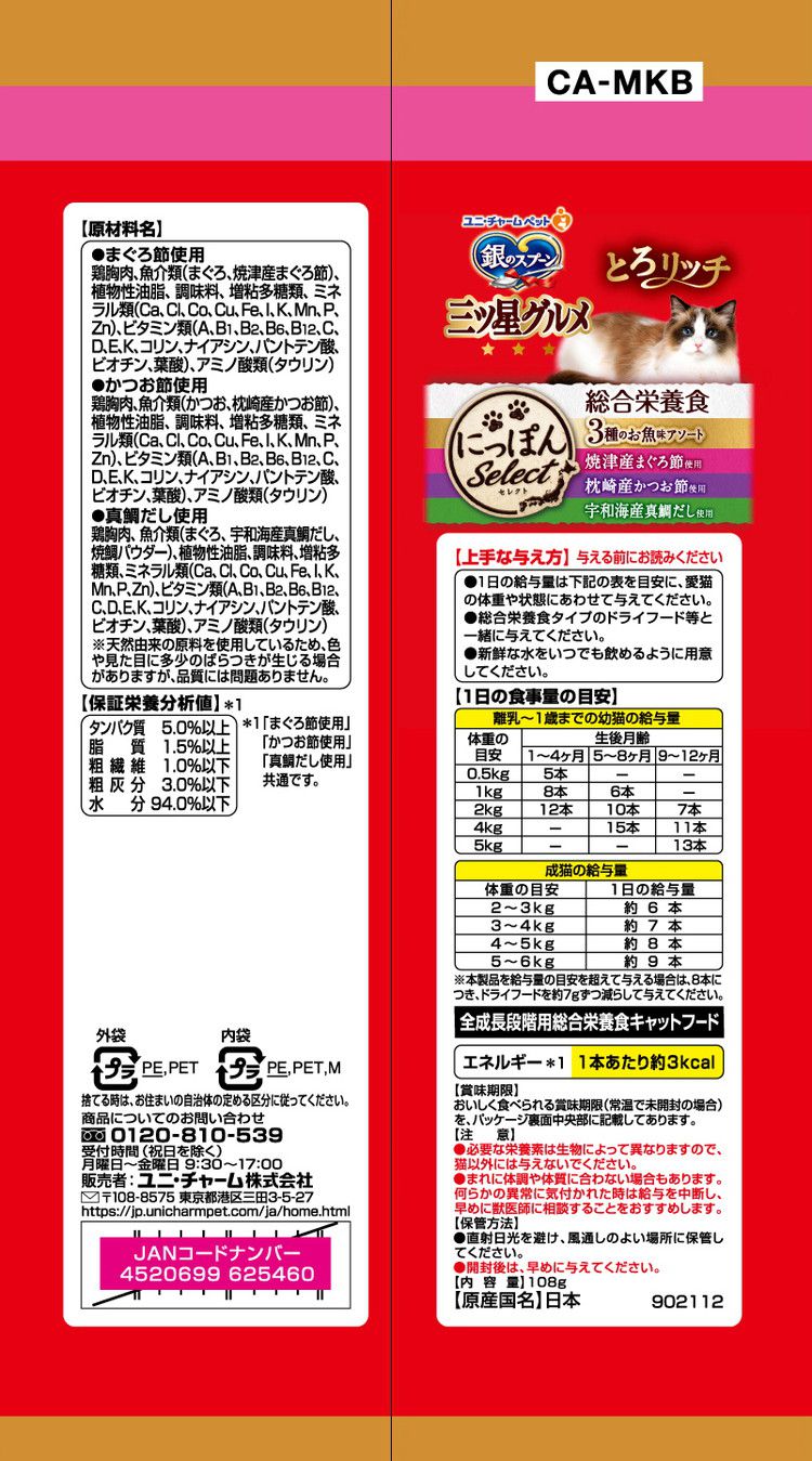 【12個セット】 ユニチャーム 銀のスプーン 三ツ星グルメおやつ にっぽんSelect 総合栄養食とろリッチ3種のお魚味アソート 108g【ポイント10倍】 【送料無料】