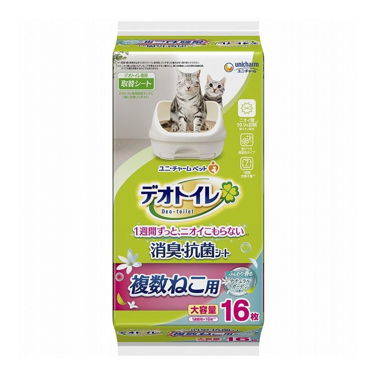 【4個セット】 ユニチャーム デオトイレ 複数ねこ用 ふんわり香る消臭・抗菌シート ナチュラルガーデンの香り 16枚【ポイント10倍】 【送料無料】