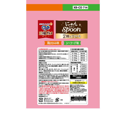 【6個セット】 ユニチャーム 銀のスプーン三ツ星グルメおやつ にゃんSpoon2種のアソート鶏ささみ&シーフード味 100g【ポイント10倍】 【送料無料】のレビュー