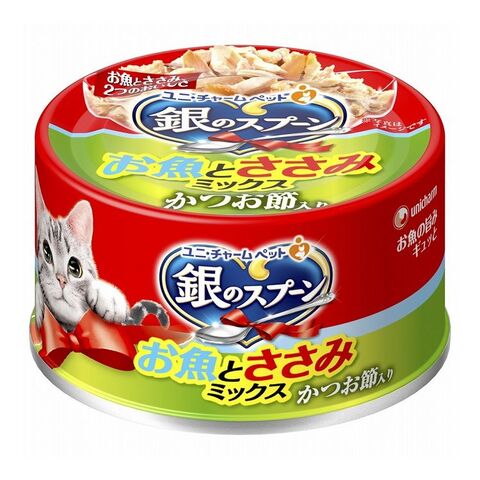 【12個セット】 ユニチャーム 銀のスプーン 缶 お魚とささみミックスかつお節入り 70g【ポイント10倍】 【送料無料】