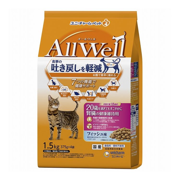 【2個セット】 ユニチャーム AllWell 20歳を過ぎてもすこやかに 腎臓の健康維持用 フィッシュ味挽き小魚とささみフリーズドライパウダー入り 1.5kg (375g×4袋)【ポイント10倍】 【送料無料】
