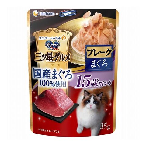 【30個セット】 ユニチャーム 銀のスプーン 三ツ星グルメ パウチ 国産まぐろ100%使用フレーク15歳頃から まぐろ 35g【ポイント10倍】 【送料無料】
