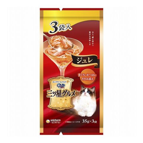 【4個セット】 ユニチャーム 銀のスプーン三ツ星グルメパウチジュレ まぐろ・かつおにささみ添え35g×3袋【ポイント10倍】