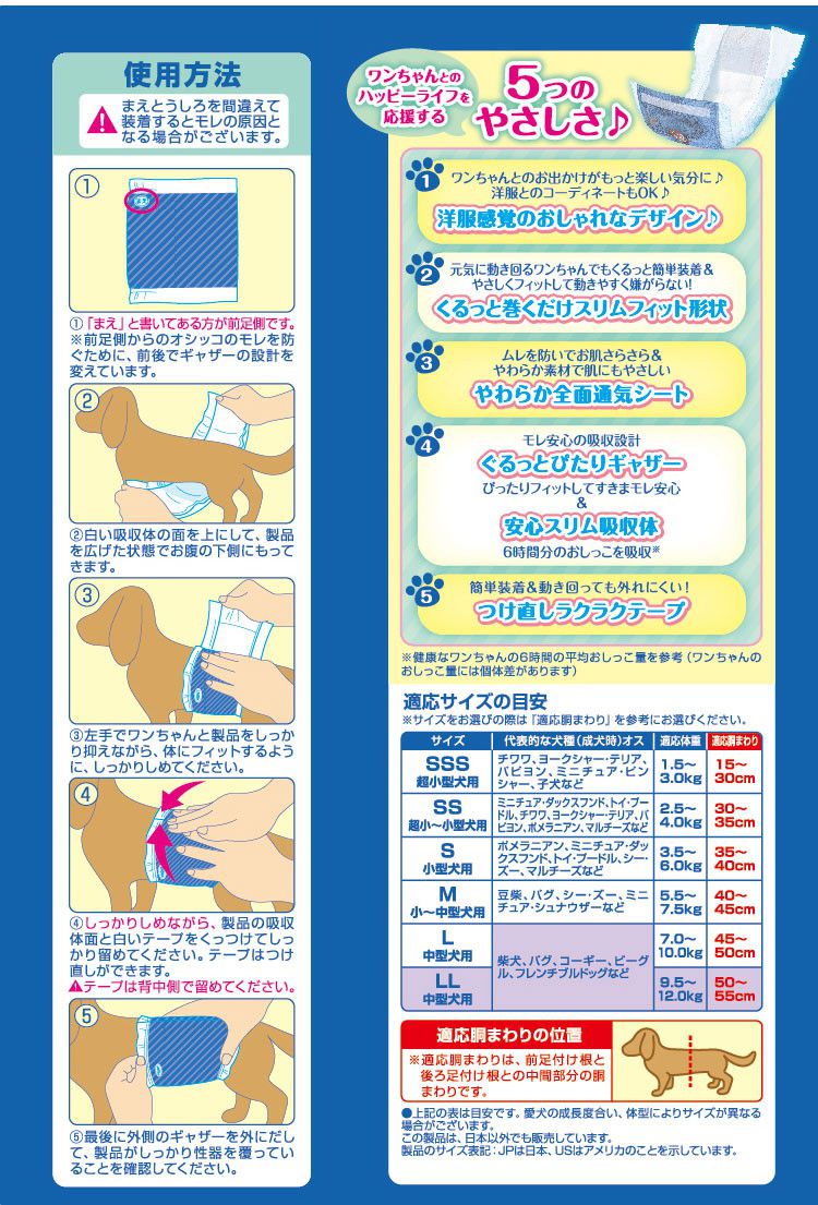 ・「くるっと巻くだけスリムフィット形状」で、元気に動き回るワンちゃんでもクルッと簡単装着&やさしくフィットして動きやすく嫌がらない!