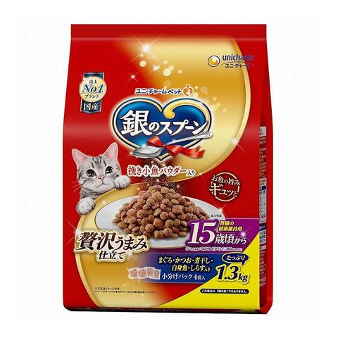 【4個セット】 ユニチャーム 銀のスプーン 贅沢うまみ仕立て 15歳頃から まぐろ・かつお・煮干し・白身魚・しらす入り 1.3kg【ポイント10倍】 【送料無料】