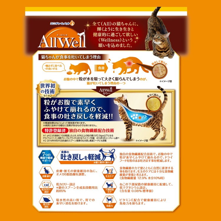 【5個セット】 ユニチャーム AllWell 室内猫用 チキン味挽き小魚とささみフリーズドライパウダー入り 1.6kg (400g×4袋)【ポイント10倍】 【送料無料】