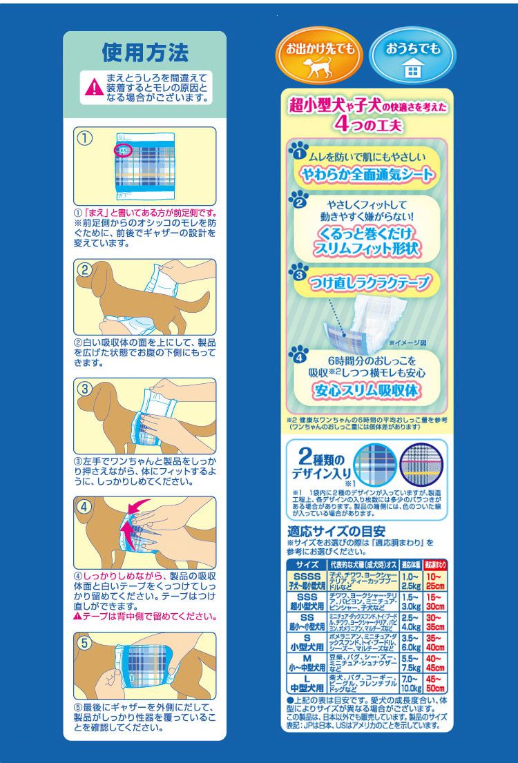 ワンちゃんと一緒におでかけが楽しめる紙オムツ