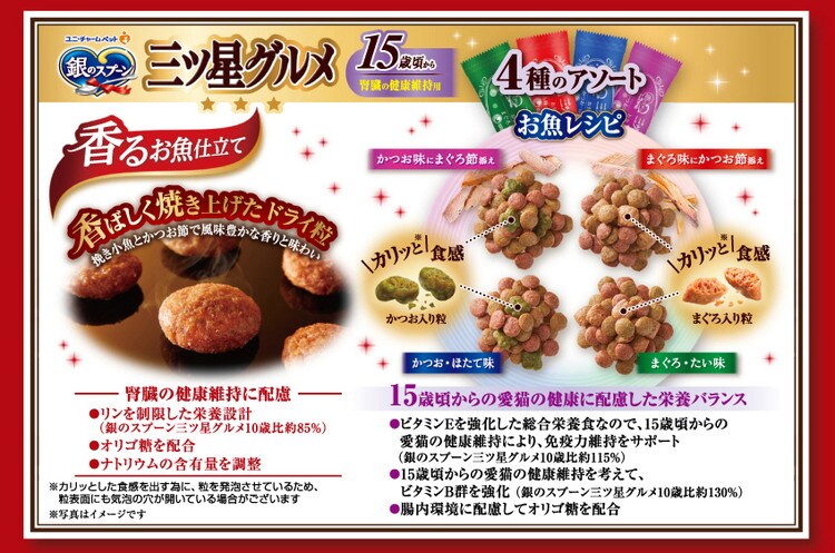 【4個セット】 ユニチャーム 銀のスプーン 三ツ星グルメ 香るお魚仕立て15歳頃から4種のアソート お魚レシピ 200g【ポイント10倍】 【送料無料】