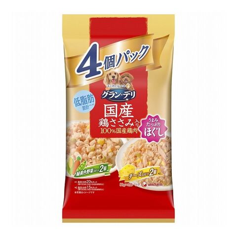 【12個セット】 ユニチャーム グラン・デリ 国産鶏ささみパウチ ほぐし 成犬用4個パック 緑黄色野菜×チーズ 80g×4個【ポイント10倍】 【送料無料】