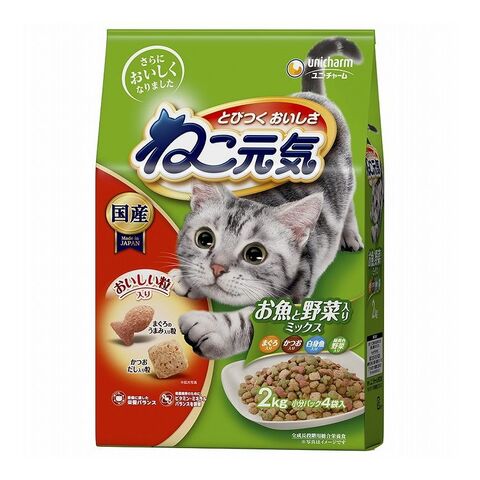 【5個セット】 ユニチャーム ねこ元気 お魚と野菜入りミックス まぐろ・かつお・白身魚・緑黄色野菜入り 2.0kg【ポイント10倍】 【送料無料】