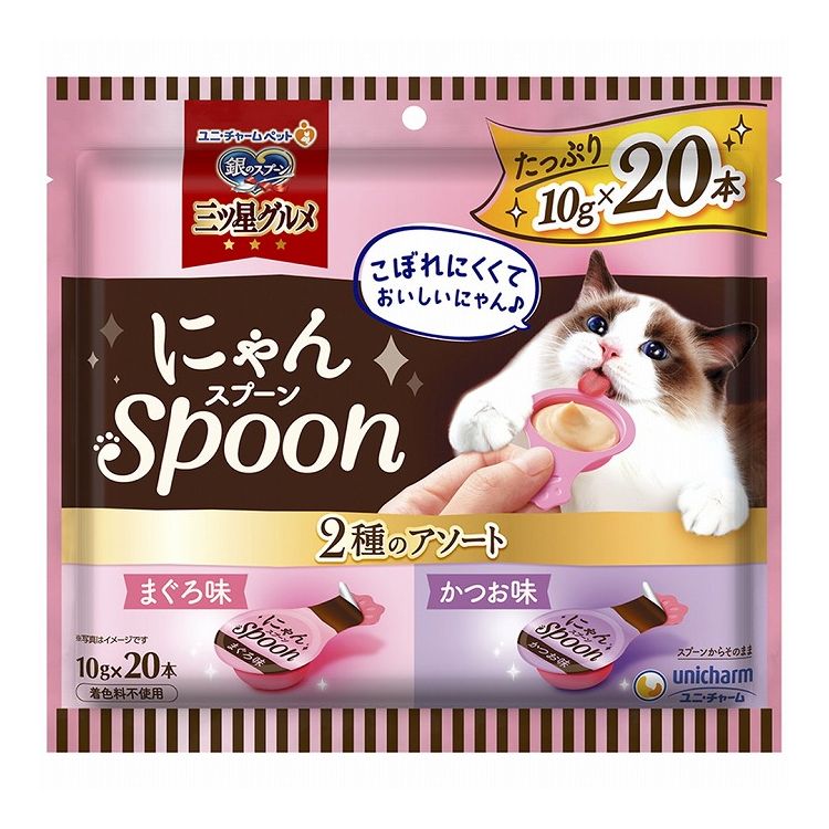 【6個セット】 ユニチャーム 銀のスプーン三ツ星グルメおやつ にゃんSpoon 2種のアソート まぐろ&かつお味 200g【ポイント10倍】 【送料無料】