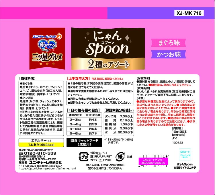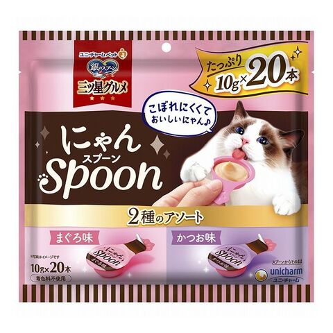 【6個セット】 ユニチャーム 銀のスプーン三ツ星グルメおやつ にゃんSpoon 2種のアソート まぐろ&かつお味 200g【ポイント10倍】 【送料無料】のレビュー