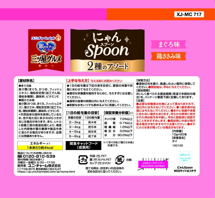 魚介類(かつお、まぐろ、フィッシュエキス)、鶏ささみ、増粘安定剤(加工でん粉、増粘多糖類)、調味料、ビタミンE
