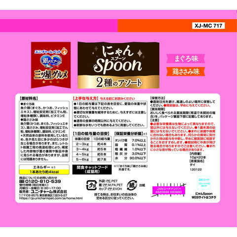 【6個セット】 ユニチャーム 銀のスプーン三ツ星グルメおやつ にゃんSpoon 2種のアソートまぐろ&鶏ささみ味 200g【ポイント10倍】 【送料無料】