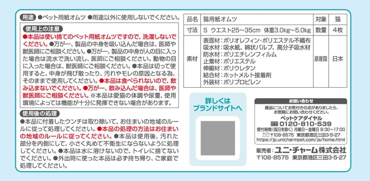 【12個セット】 ユニチャーム マナーウェア ねこ用 Sサイズ お試しパック 4枚【ポイント10倍】 【送料無料】