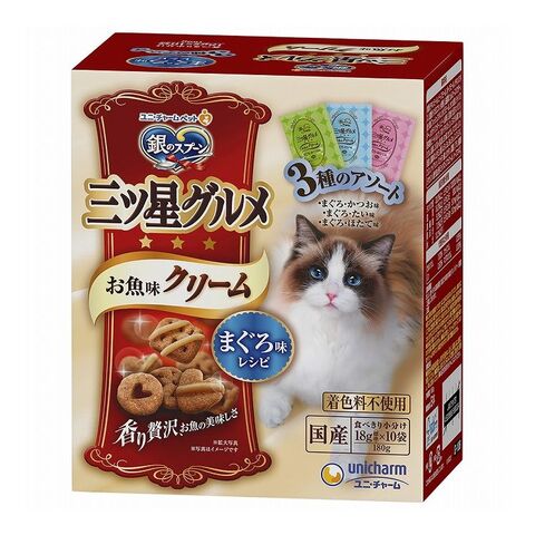 【6個セット】 ユニチャーム 銀のスプーン 三ツ星グルメ お魚味クリーム まぐろ味レシピ3種のアソート 180g【ポイント10倍】 【送料無料】