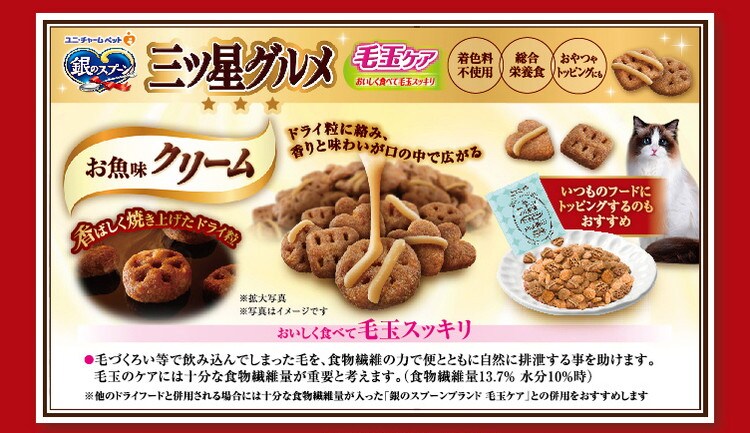 【6個セット】 ユニチャーム 銀のスプーン三ツ星グルメ お魚味クリーム毛玉ケア 180g (18g標準×10袋)【ポイント10倍】 【送料無料】