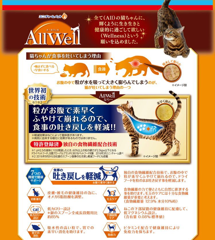 【2個セット】 ユニチャーム AllWell 早食いが気になる猫用フィッシュ味挽き小魚とささみフリーズドライパウダー入り2.4kg【ポイント10倍】 【送料無料】