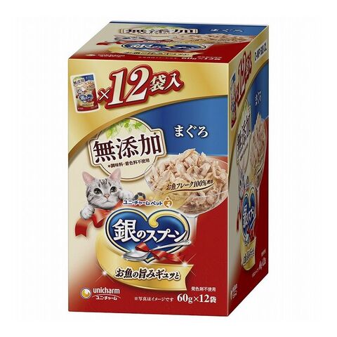 【6個セット】 ユニチャーム 銀のスプーンパウチ 無添加まぐろ 60g×12袋【ポイント10倍】 【送料無料】