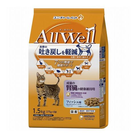 【2個セット】 ユニチャーム AllWell 成猫の腎臓の健康維持用フィッシュ味挽き小魚とささみフリーズドライパウダー入り 1.5kg (375g×4袋)【ポイント10倍】 【送料無料】