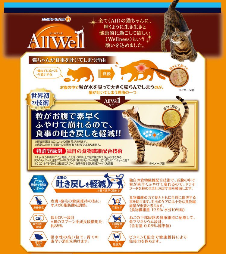 【2個セット】 ユニチャーム AllWell 成猫の腎臓の健康維持用フィッシュ味挽き小魚とささみフリーズドライパウダー入り2.4kg【ポイント10倍】 【送料無料】