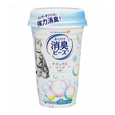 【3個セット】 ユニチャーム 猫トイレまくだけ 香り広がる消臭ビーズふんわりナチュラルソープの香り 450ml【ポイント10倍】