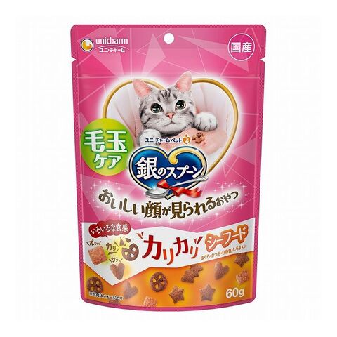 【12個セット】 ユニチャーム 銀のスプーン おいしい顔が見られるおやつ 毛玉ケアカリカリシーフード 60g【ポイント10倍】 【送料無料】