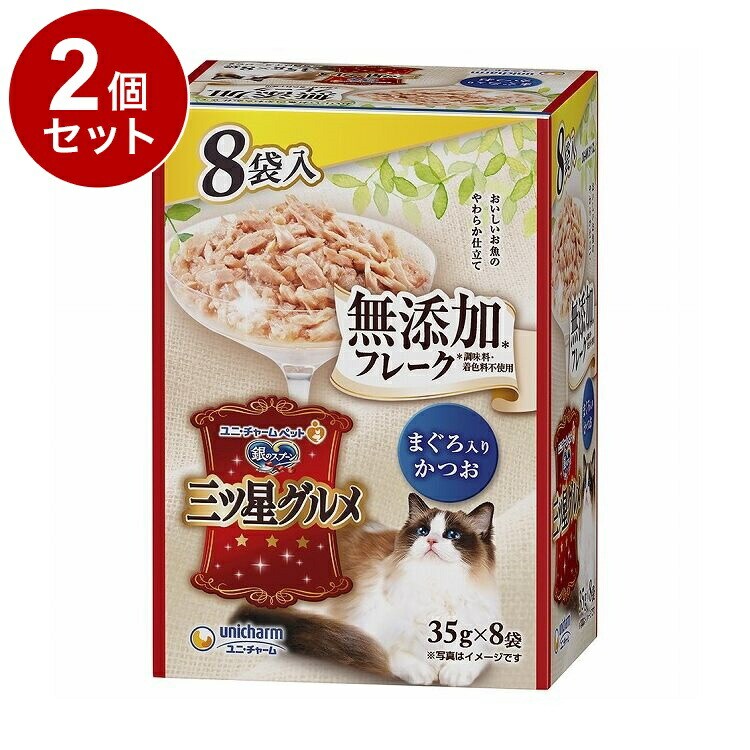 【2個セット】 ユニチャーム 銀のスプーン三ツ星グルメパウチ フレーク無添加 まぐろ入りかつお 35g×8袋【ポイント10倍】 【送料無料】