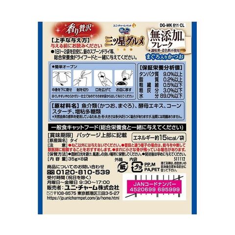 魚介類(かつお、まぐろ)、酵母エキス、コーンスターチ、増粘多糖類