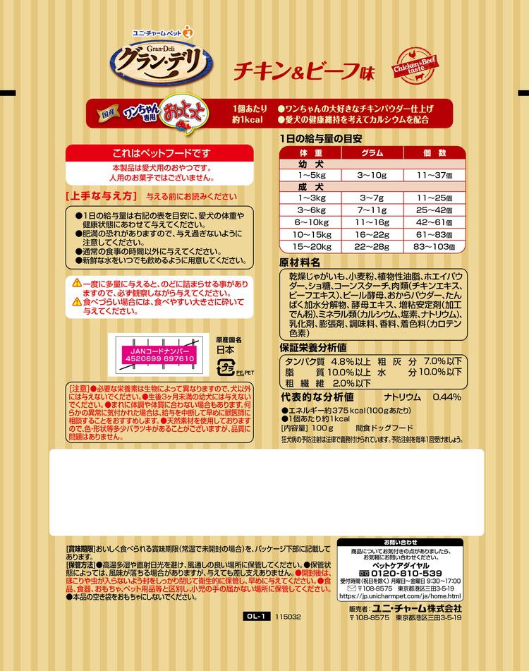 【4個セット】 ユニチャーム グラン・デリ ワンちゃん専用おっとっと チキン&ビーフ味100g【ポイント10倍】 【送料無料】
