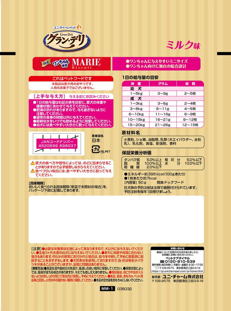 【6個セット】 ユニチャーム グラン・デリ ワンちゃん専用マリービスケット ミルク味 50g【ポイント10倍】 【送料無料】