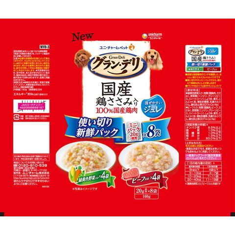 【6個セット】 ユニチャーム グラン・デリ 国産鶏ささみ入りパウチ 使い切り新鮮パックジュレ 成犬用 緑黄色野菜入り&ビーフ入り160g (20g×8)【ポイント10倍】 【送料無料】