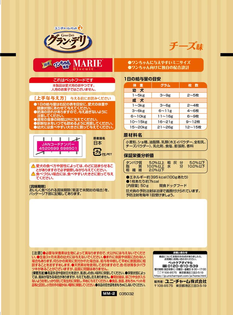 【12個セット】 ユニチャーム グラン・デリ ワンちゃん専用マリービスケット チーズ味 50g【ポイント10倍】 【送料無料】