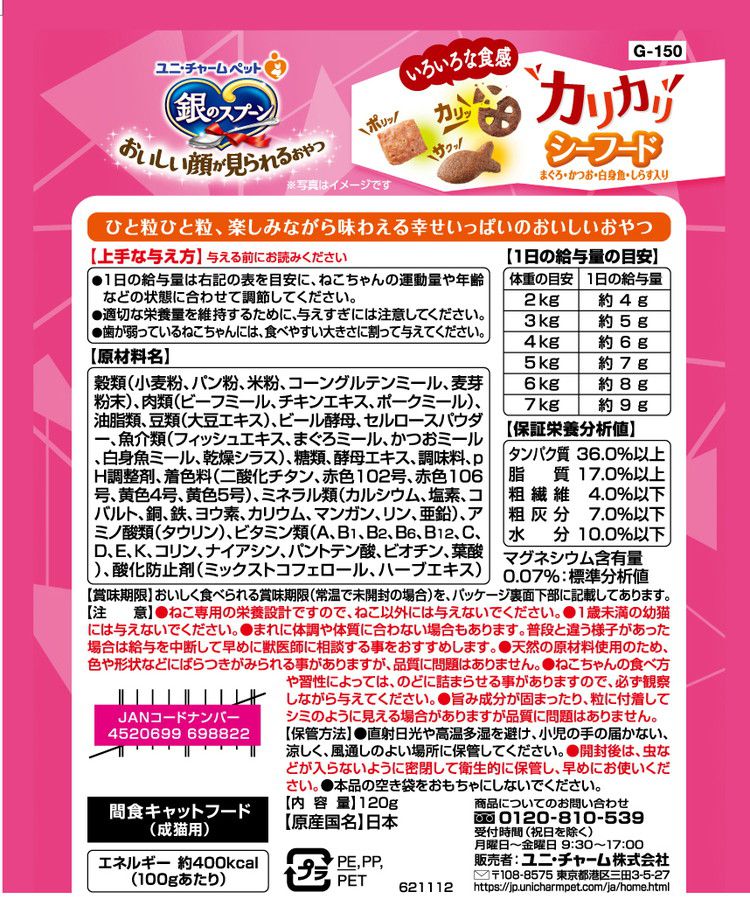 【6個セット】 ユニチャーム 銀のスプーン おいしい顔が見られるおやつ カリカリシーフード 120g【ポイント10倍】 【送料無料】