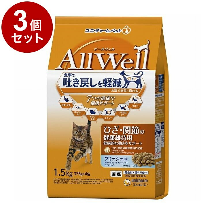 【3個セット】 ユニチャーム AllWell ひざ・関節の健康維持用フィッシュ味挽き小魚とささみ フリーズドライパウダー入り 1.5kg【ポイント10倍】 【送料無料】
