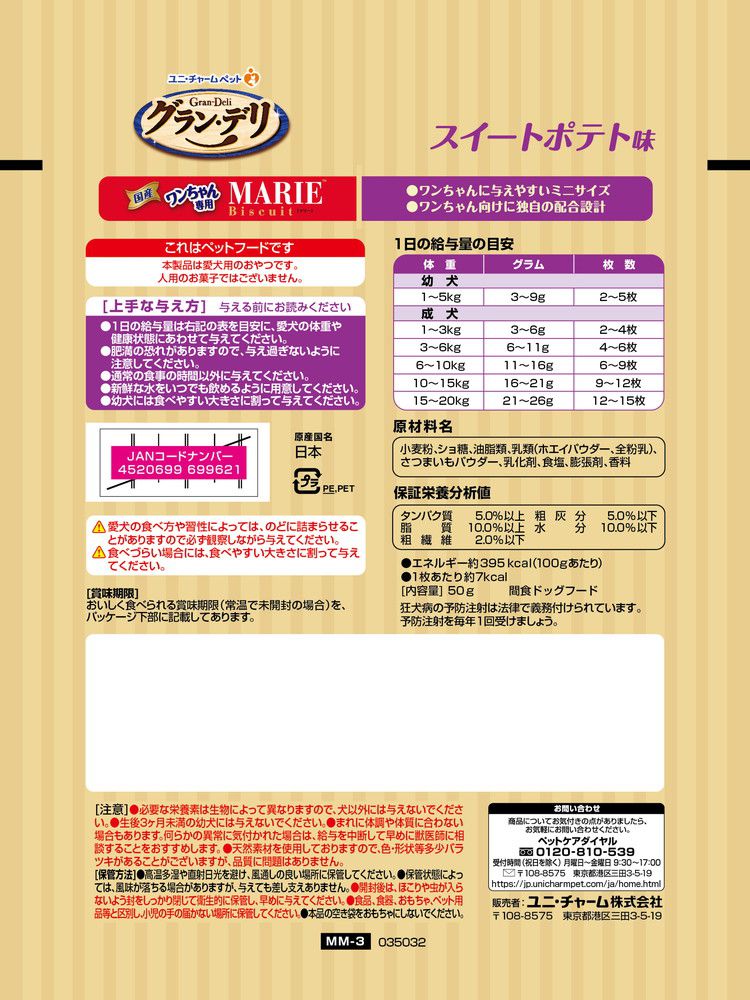 【24個セット】 ユニチャーム グラン・デリ ワンちゃん専用マリービスケット スイートポテト味 50g【ポイント10倍】 【送料無料】