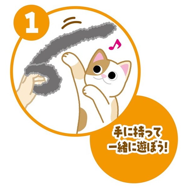 ・手に持って遊んだり、ドアノブやキャットタワーに巻きつけたり、遊び方色々です。