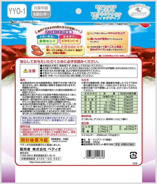 ペティオ 素材そのまま さつまいも 7歳からのやわらかスティックタイプ 260g【ポイント10倍】