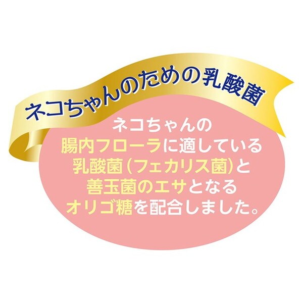 ・ネコちゃんの腸内フローラに適している乳酸菌(フェカリス菌)と善玉菌のエサとなるオリゴ糖を配合しました。